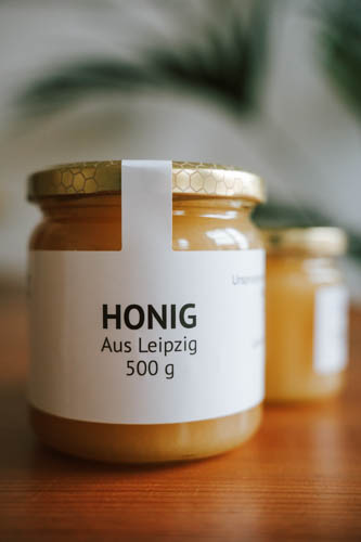 Honig aus Leipzig, Deutschland. Im 500 g Glas.